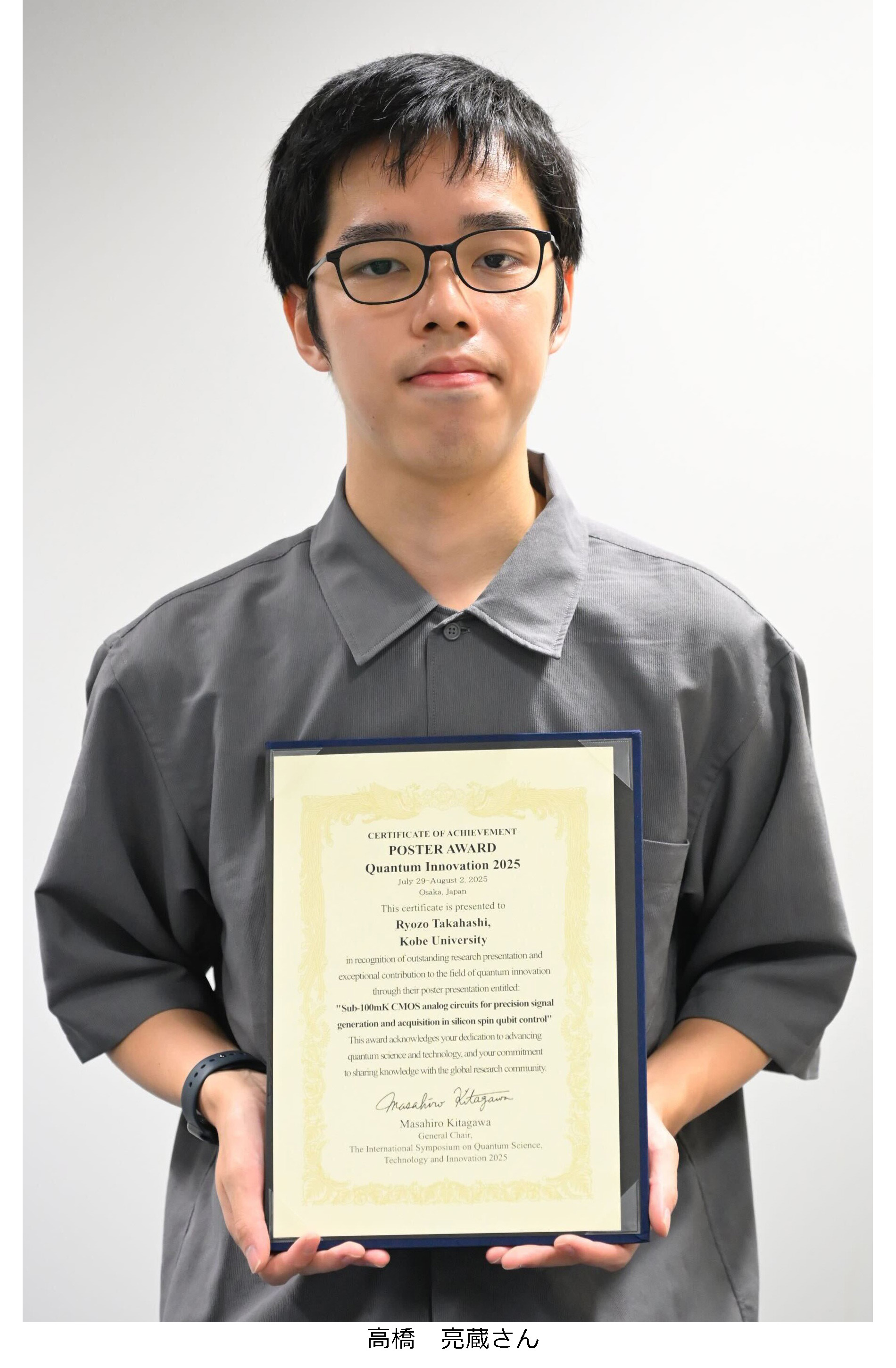 Quantum Innovation 2025において、後期課程の高橋亮蔵さんがPoster Awardを受賞しました。 スピン量子ビットを制御するための極低温アナログ回路技術に関する成果が評価されたものであり、大規模量子コンピュータの実現に向けた重要な実装技術として期待されています。